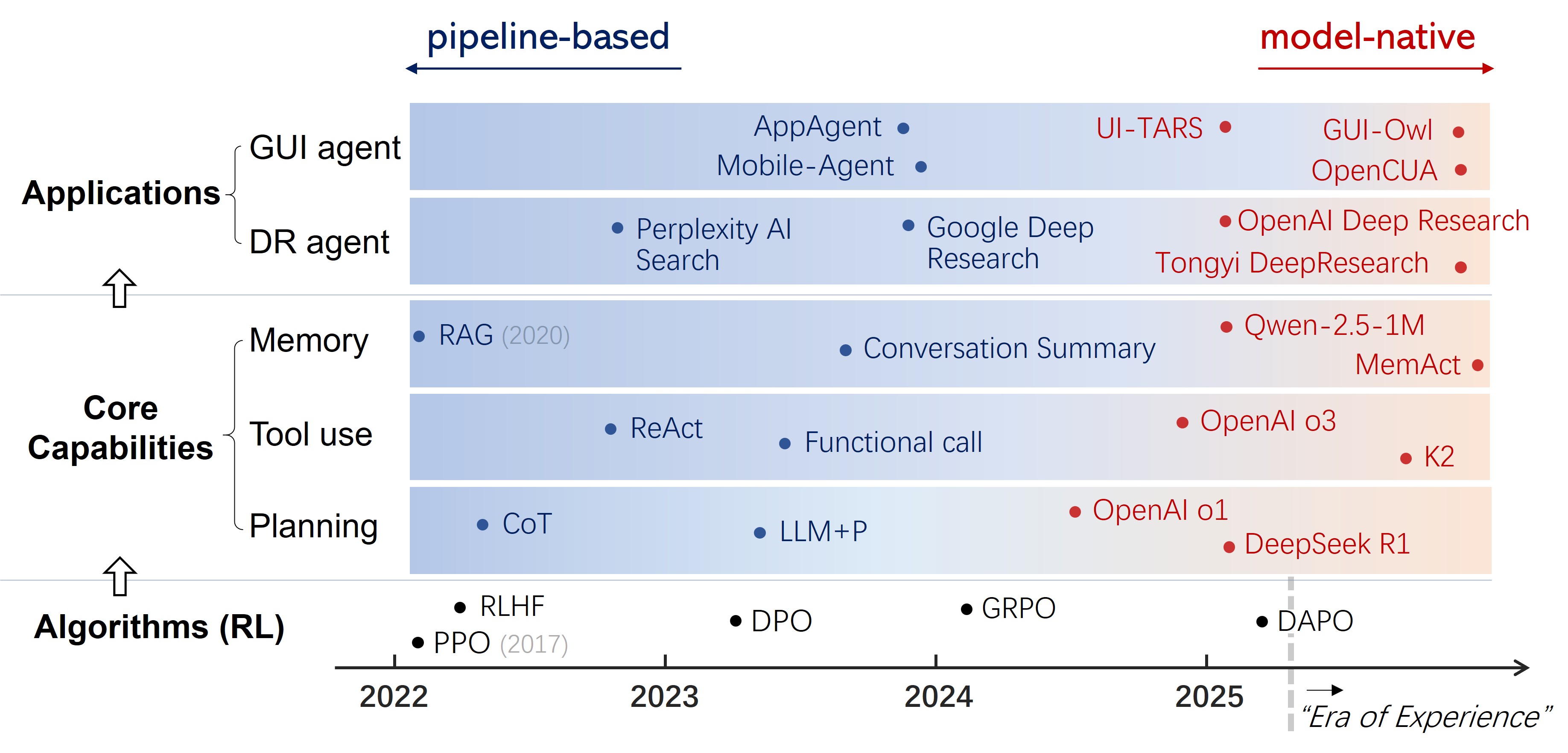 The rapid evolution of agentic AI marks a new phase in artificial intelligence, where Large Language Models (LLMs) no longer merely respond but act, reason, and adapt. A recent comprehensive survey traces a fundamental paradigm shift: from Pipeline-based systems, where planning, tool use, and memory are orchestrated by external logic, to the emerging Model-native paradigm, where these capabilities are internalized within the model’s parameters.