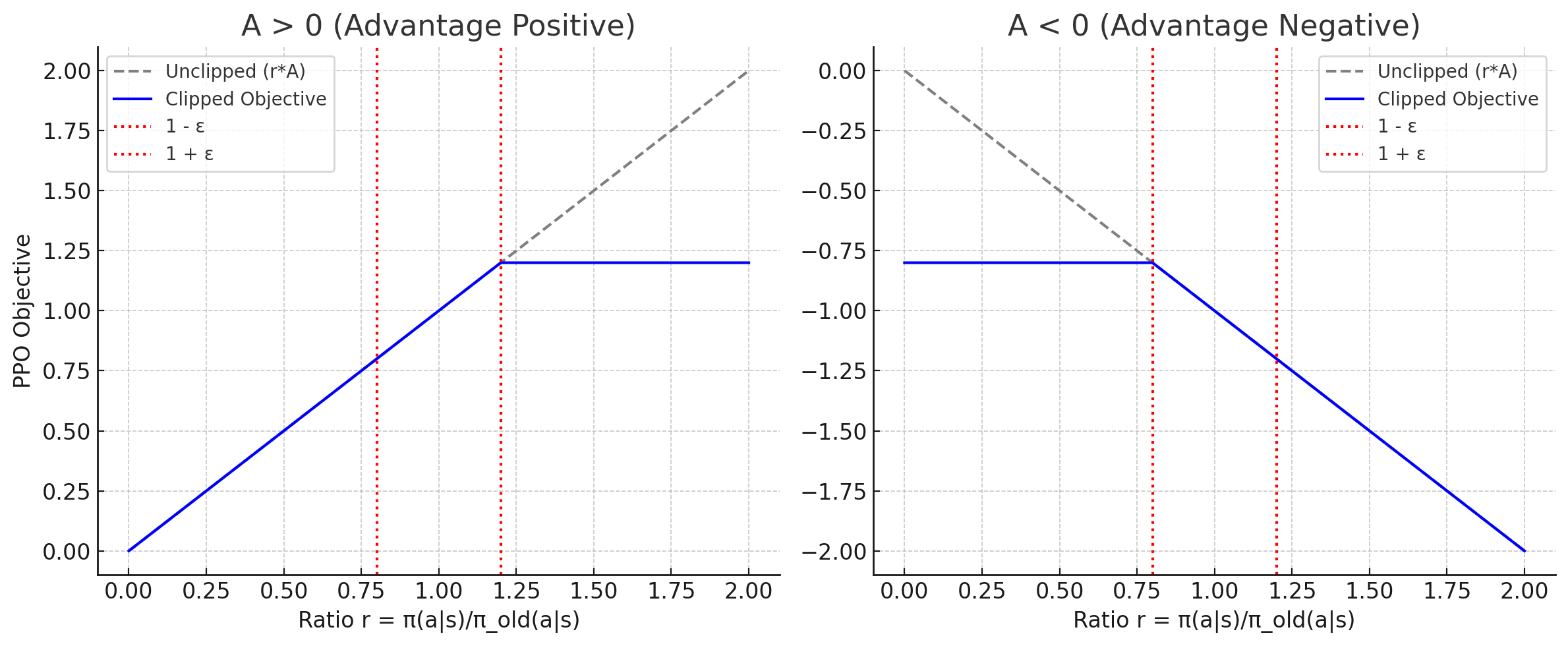 Problem: Vanilla PPO loss is unbounded for negative advantages.