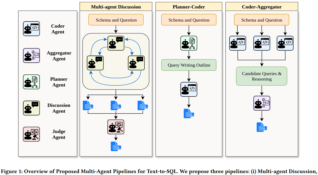 • Introduces three novel multi-agent Text-to-SQL pipelines
