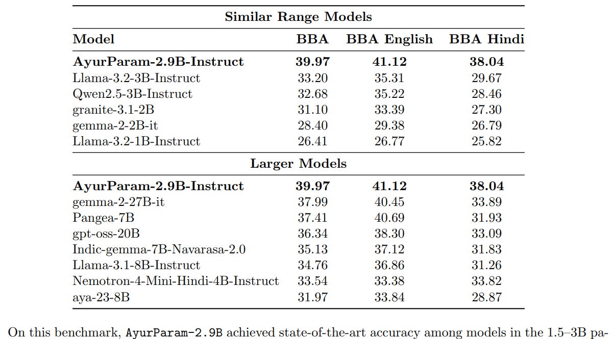 • Achieves 39.97% accuracy on BhashaBench-Ayur benchmark
