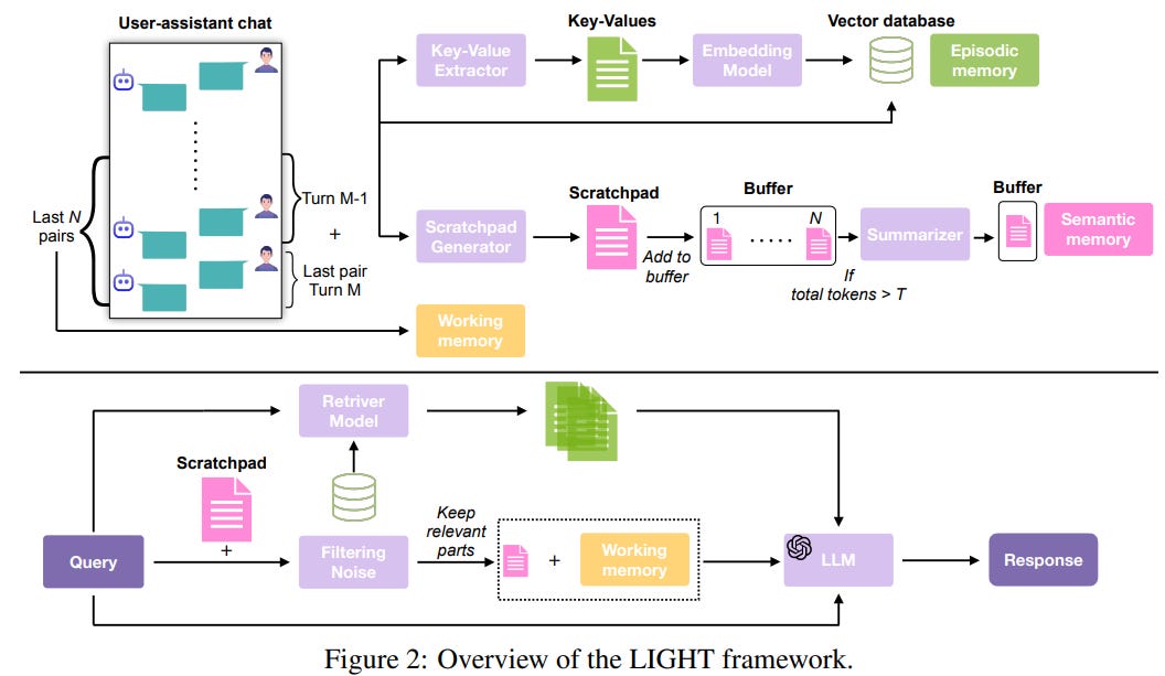 • LIGHT integrates episodic, working, and scratchpad memory modules